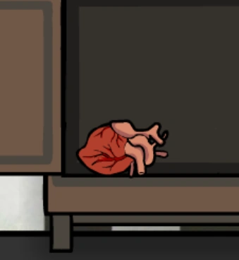 There is a covered cage, where a Hand appears from inside. When it is given a knife, it goes behind the cloth and reappears with a heart. The heart is placed inside a jar with other organs, revealing a plaque on the brain jar that states Dale's brain has become useless and advises the player call A. Vanderboom for more information.