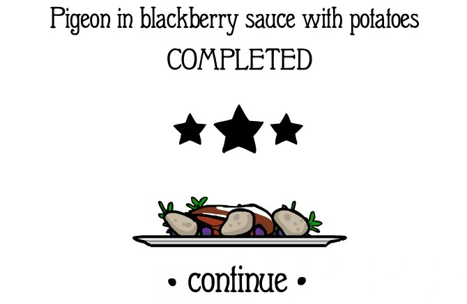 The ingredients for this dinner are Mrs. Pigeon’s meat, blackberries, and potatoes, but only the breast is necessary for the player to collect. The player must give all the ingredients to Mr. Toad for him to cook, before serving it to the other guests.
