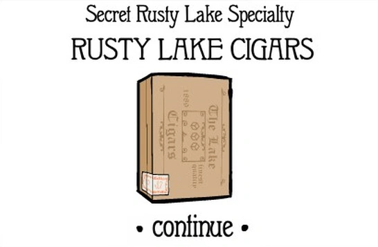 Rusty Lake Cigars, or The Lake Cigars (as written on the box), are one kind of cigars made in the Rusty Lake area. The box says that these cigars are the finest quality, and shows an image of three cubes above the Lake with its iconic boat.