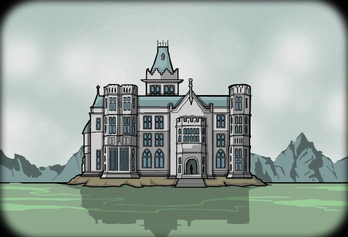 Rusty Lake Hotel is the location of the seventh game. It is a large manor house situated on an island in the middle of Rusty Lake. The hotel is owned by Mr. Owl, and is staffed by Mr. Crow, Mr. Toad, Mr. Bat, and Harvey. The hotel is made up of three visitable levels: the ground floor, and the 1st and 2nd floors, via an elevator.