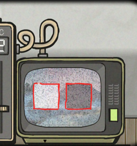 In Dale's office, there is a modified television set. Dale can change the dials to the left of the screen. When the dials are set to 247, the Bob|suspect detained in the Police Station shows up on the screen. He lifts his head, revealing he is Corrupted. When the dials are set to 746, Laura appears, and her hand reaches out of the screen. If Dale gives her a black egg, she will give him a white cube. When the dials are set to 392, there will be two glowing squares on the screen, into which the cubes are inserted.