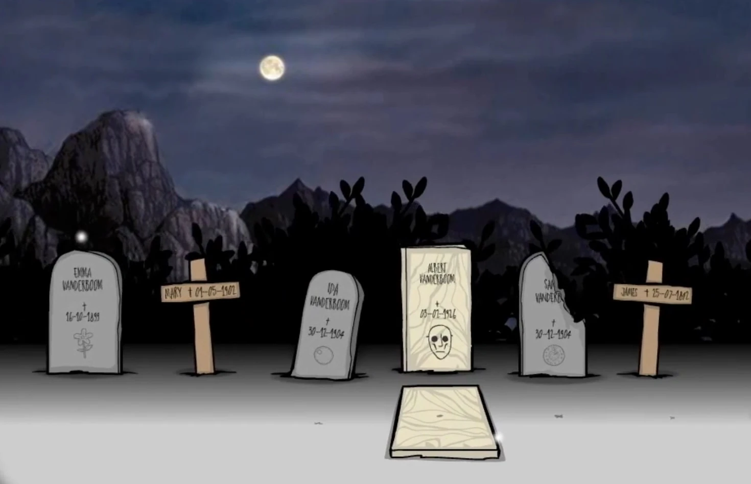 - The type of gravestone a family member gets appears to depend on which generation they belonged to. Second generation family members get wooden crosses, and third generation family members get stone graves engraved with their personal symbol. The exception is Albert, whose grave is marble.