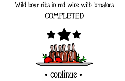 Wild Boar Ribs in Red Wine with Tomatoes is one of the meals that the player has to serve in Rusty Lake Hotel, to be dinner for the Hotel's guests.